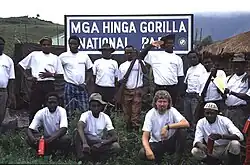 Klaus-Jürgen Sucker und seine Ranger am Eingang des Mgahinga-Gorilla-Nationalpark