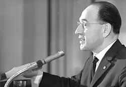 Klaus Gysi (* 3. März 1912 in Neukölln; † 6. März 1999 in Berlin) war ein deutscher kommunistischer Politiker (KPD, SED). Im kommunistischen Widerstand gegen den Nationalsozialismus aktiv, war er von 1957 bis 1966 Leiter des Aufbau-Verlags, 1956 bis 1965 als Inoffizieller Mitarbeiter (IM) „Kurt“[1] für das Ministerium für Staatssicherheit (MfS) tätig, 1966 bis 1973 Minister für Kultur, 1973 bis 1978 Botschafter in Italien, im Vatikan und in Malta und von 1979 bis 1988 Staatssekretär für Kirchenfragen der DDR. In seinen Funktionen war er mitverantwortlich für die Überwachung und Einflussnahme auf kulturelle und kirchliche Aktivitäten in der DDR, in enger Zusammenarbeit mit der Stasi sowie Zensur-Lektoren.
