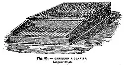 Das Klaviaturglockenspiel, Glockenklavier, in der weiteren Entwicklung Tastenglockenspiel genannt, ist ein Glockenspiel, das im Gegensatz zu anderen Metallophonen nicht direkt mit Schlägeln, sondern mit Tasten gespielt wird.[1] Das zu Beginn des 17. Jahrhunderts als Nebenform des Carillons entstandene Instrument verfügt über eine klavierähnliche Mechanik, sowie über ein bis zwei Reihen freiliegende, chromatisch gestimmte Metallstäbe oder Metallplatten, die durch hammer- oder kugelförmige Klöppel mit Köpfen aus Metall oder Kunststoff angeschlagen werden.[2][3][4][5] In der Variante mit Metallplatten wird es auch als Schlagplattenspiel oder Stahlplattenklavier kategorisiert.[6] Das Klaviaturglockenspiel / Tastenglockenspiel ist ein Idiophon und gehört, da es vom Spieler über Tasten bedient wird, zu den Tasteninstrumenten. Im Gegensatz dazu gehört das mit Schlägeln handgeschlagene Glockenspiel zu den Stabspielen.