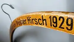 Ebenfalls in den 1920er Jahren begann die Firma Ludwig Epstein in Berlin-Schöneberg Kleiderbügel auf Basis eines Reichspatents herzustellen. In Berlin gab es ab den 1920er Jahren stetig neue Fabriken für Kleiderbügel, das Adressbuch des Jahres 1929 weist allein 13 solcher Hersteller aus.[4] In den 1940er Jahren und später wurden Hosen-Klemmbügel aus Buchenholz und Metall gefertigt, die den Namen Union 3 und den Hinweis D.R.P. (=Deutsches Reichs-Patent) trugen.