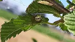 Raumnetz der Kleinen Haubenetzspine mit Schlupfwinkel