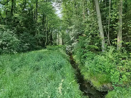 Das Naturschutzgebiet wird über Gräben Richtung Oste entwässert. Es ist fast vollständig von landwirtschaftlichen Nutzflächen umgeben. Stellenweise grenzt es an Gräben und Wirtschaftswege.