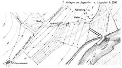 Von dem kleinen Lagerdorf (Vicus) legte die RLK einen rechteckigen, 5,10 m × 2,75 m großen Keller frei, der einst mit Leisten und Hohlziegeln gedeckt gewesen sein muss. Ferner eine 5,10 m × 2,75 m messende Barackengrube, einen Brunnen mit 1,37 m Durchmesser und eine Feuerstelle.