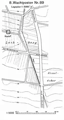 - ↑ Wp = Wachposten, Wachturm. Die Ziffer vor dem Schrägstrich bezeichnet den Limesabschnitt, die Ziffer hinter dem Schrägstrich in fortlaufender Nummerierung den jeweiligen Wachturm.