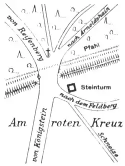 - ↑ Carl Rossel: Die römische Grenzwehr im Taunus. Limbarth, Wiesbaden 1876, S. 64 und Abb. 23.