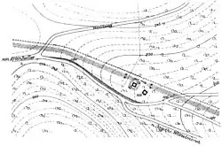 | Wp 1/6 | Aufgrund des Abstandes zwischen Wp 1/5 und Wp 1/7 vermutete, aber archäologisch nicht nachgewiesene Turmstelle.[13] Wall und Graben zeichnen sich in diesem Bereich jedoch noch deutlich im Gelände ab.[14] | |