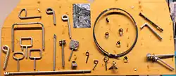 Das wesentliche Bauelement eines Klettersteiges ist üblicherweise ein den Steig längs begleitendes Drahtseil, das in je nach Gelände unterschiedlichen Abständen mittels Haken im Fels verankert ist. Diese „Haken“ bestehen häufig aus Bewehrungsstahl (mit erhabenen Rillen gewalzte Stäbe von etwa 12 mm Durchmesser), hier oft mit gebogenen geschweißten Ösen und eingeklebt mit Dübelkleber in Bohrlöcher im Fels.
