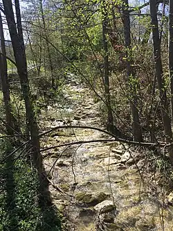 Rechts am Lauf auf etwa 780 m ü. NHN liegen zwei Teiche, zusammen 0,3 ha, kurz vor der Talsteige der L 360 von Onstmettingen her, die dann im Waldtal läuft.- (Bach aus der Kohlgrube), von links und Südwesten auf etwa 715 m ü. NHN im Buchholder Wald, ca. 1,0 km[8] und ca. 1,0 km².[9] Entsteht auf etwa 885 m ü. NHN am steilen Ostabfall des Irrenbergs (921,3 m ü. NHN[5]) südöstlich des Gipfels mit dem Wasserreservoir.