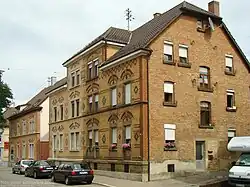 Das Doppelhaus ist ein zweistöckiger Bau. Die Fassade wird symmetrisch mit einer axialen Fensterordnung unterteilt. Ein Zwerchhaus in der Mitte verbindet das Doppelhaus miteinander. Die mit unterschiedlichen Farben glasierten Ziegeln der Fassade erinnern an die Ziegelei Böckingen.