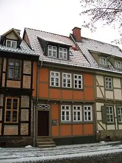 Das zweigeschossige Fachwerkhaus entstand in seinem Kern Anfang des 17. Jahrhunderts und gehört zum UNESCO-Weltkulturerbe. Die Fachwerkfassade weist die typischen Zierformen der Bauzeit auf. So finden sich an den Füllhölzern Schiffskehlen. Darüber hinaus bestehen Balkenköpfe in Walzenform mit Sternmuster. In der Zeit um 1840 wurden die Fensterläden und Fensterrahmungen des Erdgeschosses erneuert.