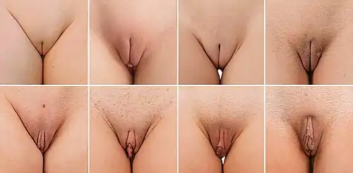 Die Größe und Form der Klitoris wie auch der Vorhaut ist individuell sehr unterschiedlich, deshalb kann die Glans teilweise oder vollständig bedeckt sein oder auch freiliegen. Die Klitorisvorhaut kann ihrerseits von den großen Schamlippen verdeckt sein oder herausragen.