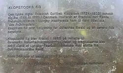 Während dieser Aufenthalte entstanden u. a. Die Frühlingsfeier und Der Messias.[7] Die Anwesenheit des deutschen Dichters hatte dabei einen großen Einfluss auf den dänischen Dichter Johannes Ewald (1743–1781), mit dem die neuere Periode der dänischen Literatur begann.