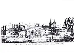 Zwischen der südlichen Klostermauer und dem Kloster befanden sich noch im 18. Jahrhundert aufwendige Gartenanlagen, die „Französischen Gärten“, von denen noch eine elliptisch geformte Brunnenanlage sowie ein Obelisk erhalten sind. Diese Anlagen dürften aus der gleichen Zeit wie die ab Ende des 16. Jahrhunderts im Wesentlichen unter Einfluss des Barocks stehenden begonnenen Modernisierungen auf der Westseite stammen. Besucher aus dem 18. Jahrhundert rühmten diese Gärten. Die Levada floss durch diese Gärten. Am Ufer der Levada gab es vier Plätze mit Brunnen, die als Lehrplätze für die Novizen galten. Der letzte ist mit einem solchen kleinen Brunnen noch vorhanden.