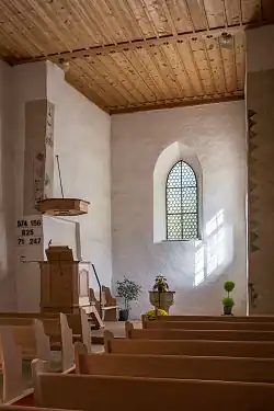 Das ursprüngliche Altarhaus bestand aus einem langgezogenen Saal, welcher dem heutigen Kirchenschiff entspricht. Die Kirche hatte als Einapsidensaal nur eine Apsis. Der Chor war durch eine 60 cm dicke Mauer vom Laienhaus getrennt. Im Mönchschor fand man steinerne Rückwände eines Chorgestühls. Das Laienhaus ist eine Stufe tiefer gebaut als der Chor und bis nach oben von ihm getrennt. Der Mönchschor war wahrscheinlich mit einem Gewölbe gedeckt. Auf der Südseite des Chors befand sich eine Tür für die Chorherren. Genau auf der gegenüberliegenden Seite befand sich eine Tür zur direkt an der Kirche angebauten Sakristei, von der heute nur noch Grundmauern übrig sind.