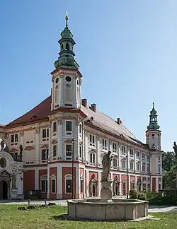Die Klausur liegt rechts von der Kirche. Sie wurde unter Verwendung älteren Mauerwerks von 1681 bis 1702 errichtet, später zur Nebenresidenz ausgebaut und diente von 1945 bis 1990 als Technikum, jetzt als Priesterseminar. Sie ist eine dreigeschossige Dreiflügelanlage, im Nordwesten und Südwesten mit Ecktürmchen mit Zwiebelhauben und Laternen.