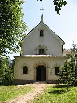 Die Kapelle ist ein schlichter Bau mit einer Vorhalle, einem zweijochigen Langhaus unter einem Tonnengewölbe mit Stichkappen, und einem stark eingezogenen einjochigen Chor unter einem Kreuzgewölbe und einer halbrunden Konche als Abschluss. Die Kapelle hat nördlich und südlich Rundbogenportale und in der Wand hochliegende Rundbogenfenster.