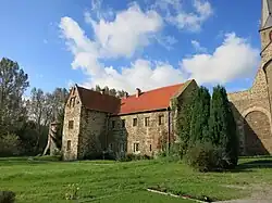 Südlich der Kirche liegen Reste des Kreuzgangs aus dem 13. Jahrhundert, die aus fünf Jochen des Nordflügels (seit 2001 als Gemeinderaum genutzt) und fünf Jochen des Südflügels mit Spitzbogenarkaden bestehen. Der Ostflügel mit Wohnungen ist im Kern frühgotisch. Er besteht aus einem langgestreckten, zweigeschossigen, mehrfach umgebauten Gebäude aus Grauwacke, an das wenig später der Ostvorbau angefügt wurde. Nach Westen sind zwei Spitzbogentüren, nach Süden und Osten gotische Fenster erhalten. Unter dem Ostgiebel ist das Datum 1483 angebracht, das wohl für die Errichtung des darüberliegenden Backsteingiebels gilt. In drei Blendnischen sind figürliche romanische Reliefs mit Engeln eingebaut, die wohl aus der spätromanischen Chorschranke der Kirche stammen.