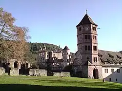 Im Jahre 1474 begann unter Erhaltung der Abteikirche der Abriss der romanischen Klausurgebäude, die man bis 1516 durch gotische Neubauten ersetzte. Beteiligt waren u. a. die Meister Peter von Koblenz, Hans Spryß von Zaberfeld und Martin von Urach.[14]