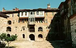 Die Bibliothek des Klosters besitzt über 2000 Handschriften, von denen rund 800 noch in byzantinischer Zeit entstanden sind. Im Archiv sind 172 Urkunden vorhanden, die vor 1453 ausgestellt wurden. Im 19. Jahrhundert wurden einzelne Handschriften, darunter eine des Babrios, an den im Auftrag des französischen Bildungsministeriums handelnden Griechen Minoides Mynas verkauft.
