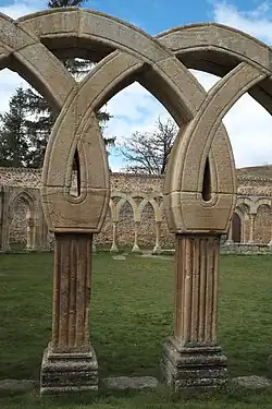 Der nordöstliche Teil des Kreuzganges besteht aus leicht zugespitzten, hufeisenförmigen Bögen. Die Wülste, die über den Kapitellen aufsteigen, sind vielleicht die Überreste eines Alfiz, der ursprünglich um die Bögen verlief. Die Hufeisenform wie auch die Alfizrahmung werden islamischem Einfluss zugeschrieben. Die Bögen ruhen auf quadratischen Pfeilern mit vier vorgestellten Halbsäulen. Die meisten Kapitelle sind mit Blattdekor verziert. Ein Kapitell ist mit Flechtwerk versehen, ein anderes mit Greifen und Fabelwesen, deren Schwänze ineinander verschlungen sind.
