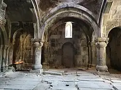 Der Gawit vor der Erlöserkirche entstand 1181 im Auftrag von Fürst Kurd und Abt Grigor Tutevordi. Ausführender Architekt war Zhamhair. Vier massive Säulen tragen den Yerdik (eine Kuppel mit zentraler Öffnung). In seiner Bauweise ähnelt der Yerdik den traditionellen armenischen Wohnhäusern mit dem Unterschied, dass anstelle von Holzbalken Steinplatten verwendet wurden. Sanahin gilt dabei als frühes Beispiel der Nutzung dieser Bauweise in sakralen Gebäuden. Die Säulen, deren Sockel und Kapitelle mit Reliefs und Eingravierungen verziert sind, teilen den Innenraum zudem in mehrere Teile.[7]