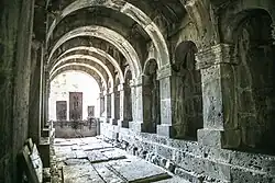 Den Gawit vor der Surb-Astvatsatsin-Kirche ließ Fürst Vacheh Vachutian im Jahre 1211 errichten. Die dreischiffige Halle ist mit Gewölben und zwei Satteldächern bedeckt. Zwei Reihen mit je drei unterschiedlich verzierten Säulen teilen die Halle in drei Schiffe.[7]