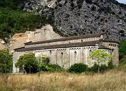 Die bestehenden, lombardisch beeinflussten Bauten gehen wohl auf das 11. Jahrhundert zurück. Jedoch sind noch Reste aus westgotischer Zeit vorhanden (u. a. Kapitelle des Portals und der Altarmensa). Die dreischiffige basilikale Kirche Santa María ohne Querhaus besitzt sieben Joche. Die drei halbrunden Apsiden sind mit Blendbogenfriesen, mit tiefen Nischen an der Hauptapsis, und Lisenen verziert. Ein Turm an der Südwand wurde nur bis zur Höhe von drei Metern ausgeführt. Nördlich der Kirche sind die Konventsgebäude als Ruinen erhalten. Zum Kloster gehörte auch die nahe gelegene kleine einschiffige Kirche San Pablo aus dem 12. Jahrhundert mit einem Tonnengewölbe.