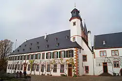 Die übrigen Gebäude des Klosters wurden in der Folgezeit von staatlichen Behörden und der Justiz bis in die 1960er Jahre als Amtsgebäude genutzt.[26] Die Klosteranlage verblieb seit der Säkularisation in staatlicher Hand und gehört heute dem Land Hessen. Betreut wird sie seit 1948[27] von den Staatlichen Schlösser und Gärten Hessen.[28] Seit den 1980er Jahren wurde die Klosteranlage schrittweise in Stand gesetzt und restauriert, wobei das Leitbild die letzte Blütezeit des Klosters im 17. und 18. Jahrhundert war. Dies prägt heute das Erscheinungsbild.