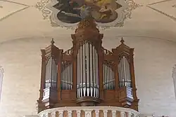Im Jahr 1869 erhielt die Kirche eine Orgel des Orgelbauers Eberhard Friedrich Walcker. Sie gehört zu den am besten erhaltenen Orgeln des großen Orgelbauers der Romantik. Sie wurde im Jahr 1998 durch die Freiburger Orgelbauwerkstatt Hartwig und Tilmann Späth restauriert und auf den Originalzustand zurückgeführt.[6] Im Jahr 2004 erhielt das Werk einen Magazinbalg anstelle des Schwimmerbalgs von 1973.[7] Im Chorraum befindet sich seit 2013 eine Truhenorgel des Waldkircher Orgelbauers Wolfram Stützle.[8]
