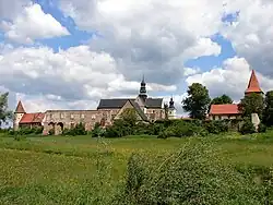Die Klausur liegt rechts von der Kirche. Der quadratische Kapitelsaal stammt aus dem zweiten Viertel des 13. Jahrhunderts; sein Gewölbe mit vier Feldern ruht auf einer Säule mit Blattkapitell und ähnlich verzierten Wandkonsolen. Zum Kreuzgang führt ein doppelarkadiger Durchgang, daneben befinden sich Zwillingsöffnungen mit Dreipassbögen und Säulchen, die im 19. Jahrhundert ausgewechselt wurden. Der gotische Kreuzgang mit Kreuzrippengewölbe und Wappenkonsolen datiert vom Anfang des 15. Jahrhunderts. Von den spätgotischen, in ihrer Erhaltung einzigartigen Wehranlagen sind noch große Teile vorhanden.