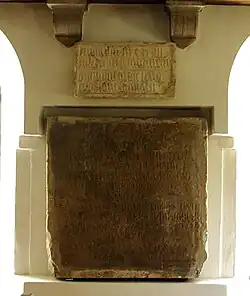 Der Inschriftenstein stammt vermutlich vom Ende des 15. Jahrhunderts und besagt: