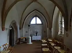 Neben dem Altar stehen Simon Petrus und Paulus von Tarsus. Das Sakramentshaus stammt aus der Mitte des 15. Jahrhunderts und besteht aus einer Kielbogenrahmung, die mit Krabben und Maßwerk, an den Pfosten mit Engeln verziert ist. Sie stehen auf einem grimmig schauenden Gesicht, das an einen Löwen erinnert und die Überwindung des Bösen durch das Gute symbolisiert. Weiterhin sind Reste der mittelalterlichen, roten Ausmalung mit goldenen Sternen erkennbar.