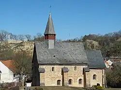 Die Kirche im Tal stellt den Ursprung des Klosters auf dem Felsen über dem Ort dar. Erst zu einem späteren Zeitpunkt zog das Kloster auf den Felsen, den Langen Stein. Vermutlich aber nicht ganz, was eine räumliche Trennung der Einrichtung verursachte, denn die Kirche im Tal blieb Klosterkirche. Diese Verlegung des Klosters ist einmalig im Waldecker Land. Warum dies geschah, ist unklar. Gründe für den Umzug des Klosters könnten der instabile Untergrund der Kirche im Tal oder die Tatsache gewesen sein, dass sich die Lage auf dem Hügel besser zur Verteidigung eignete.