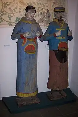 - Figuren aus dem religiösen oder häuslichen Bereich (zum Beispiel der heilige Ambrosius oder eine Bäuerin)