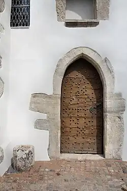 Das Kirchenschiff und der anschließende Chor sind weiß verputzt. Die Fenster des älteren Teils sind klein. Im neueren Teil sind die rundbogigen Fenster größer. Die Strebpfeiler sind unverputzt. An der Südseite des Schiffes befindet sich ein Eingang mit Spitzbogen und rundbogiger Figurennische. Der Eingang im Norden ist zugemauert.