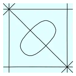 In der Grafik 4 sind als Beispiel Knotenlinien und Knotenpunkte dieser speziellen Funktion gezeichnet; im linken Part nur die Knotenlinien. Um die Knotenlinien der Umrandung besser zu erkennen, wurden die Knotenlinien der Funktion etwas über das Quadrat hinaus gezeichnet. Wir stellen fest: Knotenlinien sind eine Art „Fingerabdruck“ der Funktion.