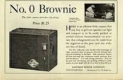 Das Kameragehäuse ist abgeleitet von den Ende des 19. Jahrhunderts verbreiteten so genannten Schülerapparaten und Geheimkameras, die mit einfachen Landschaftslinsen ausgestattet waren, im Gegensatz zum Kodak jedoch Glasplatten als Aufnahmematerial verwendeten und daher vergleichsweise umständlich zu bedienen waren. Die Gemeinsamkeit all dieser Kamerabauformen des ausgehenden 19. Jahrhunderts bestand jedoch darin, dass sie mobil, d. h. tragbar waren. Die Plattenkameras dieser Zeit erforderten dagegen immer ein Stativ, waren nur schwer zu transportieren und keineswegs permanent aufnahmebereit wie eine typische Boxkamera.