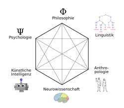 Wissenschaftliche Fächer, die an der Kognitionswissenschaft beteiligt sind, sind vor allem Psychologie, Neurowissenschaft, Informatik/künstliche Intelligenz, Linguistik und Philosophie, aber auch Anthropologie und Soziologie.