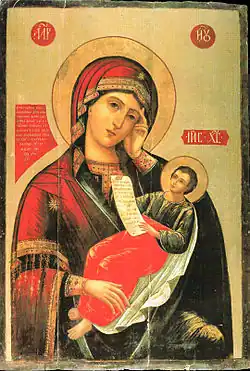 Das Wort Kokoschnik kommt aus dem Altslawischen und leitet sich aus dem Wort Kokosh ab, was „Henne“ oder „Hahn“ bedeutet. Kokoschniks gibt es seit dem 10. Jahrhundert; sie hatten ihren Ursprung in der Stadt Weliki Nowgorod.[1] Sie wurden von Frauen getragen, um die Haare zu bedecken. Die frühesten Kokoschniks hatten die Form eines Heiligenscheins, der an der Stirn am breitesten und an den Seiten am schmalsten war. In der russischen Kunst wurden christliche Ikonen meistens mit solchen Bedeckungen dargestellt.[2] Der Kokoschnik war ein Bestandteil der traditionellen russischen Volkstracht, der mit dem Sarafan, einem langen Gewand, kombiniert wurde.