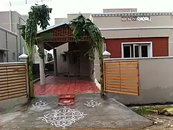Eine andere Art dieser Bodenkunst ist das mit Blumen versehene Pukkalam in Kerala bzw. Rangoli im Norden Indiens.
