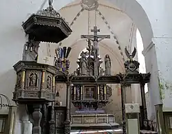 Der einzige in Estland erhaltene Lettner mit den Figuren von Christus, Maria und Maria Magdalena ist eine Schenkung des Barons Fabian Ernst von Ungern-Sternberg und seiner Frau, geborene von Wrangel.