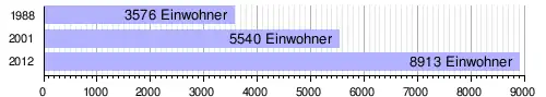 Im Hauptort lebten bei der Volkszählung 2012 8913 Einwohner in 1524 Haushalten,[1] bei der Volkszählung 2001 5540 in 996 Haushalten[5] und bei der Volkszählung 1988 3576 in 635 Haushalten.[6]