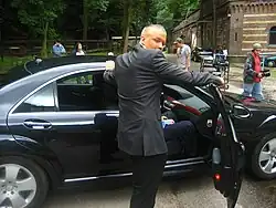 Zu seiner Musikpromotion gehört das ostentativ zur Schau gestellte, durchsichtig vorgetragene Rollenspiel als „der Boss“ und „Westdeutschlands King“, der sich mit Statussymbolen und devotem Personal umgibt, insbesondere einem Butler namens „Frederic“ und „Pasa“, seinem bosnischen Leibwächter.[66] Mit ironischer Vorliebe werden dabei Stereotype gezeigt, die die Lebenswelt eines Bosses der organisierten Kriminalität imaginieren.
