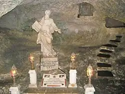 Rechts unterhalb der Kirche befindet sich die Paulusgrotte. Sie gehört zu den Stätten der Insel, die an den Schiffbruch des Paulus und seiner Begleiter auf der Überfahrt nach Rom und an seinen dreimonatigen Aufenthalt auf Malta (Apg 27 und Apg 28 ) erinnern. Von der Tradition wird sie als die Stelle bezeichnet, wo der Apostel in dieser Zeit gewohnt, gelehrt und die Heilige Messe gefeiert habe.