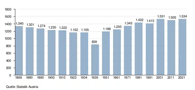 Die Bevölkerung der Ortschaften Lengau, Sauedt (früher Gemeinde Peilstein), Albenödt, Raschau, Schröck und Stratberg (früher Gemeinde Sarleinsbach), die mit 1. Jänner 1950 eingemeindet wurden, ist in der Zahl des Jahres 1939 nicht enthalten. Die vorherigen Zahlen beziehen sich auf das heutige Gemeindegebiet.