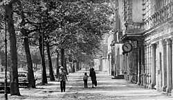 Neben den Schmuckplätzen bestand das Straßengrün in den ersten Jahrzehnten vornehmlich aus Vorgärten, die beidseitig an den Gehwegen vor den meisten Häusern der Straße lagen.[37]