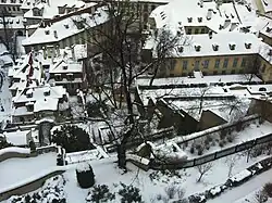 deutsch: Archäologische Funde präsentiert vor Ort II. Spaziergang durch Hradschin, Kleinseite und einen Teil der Altstadt. Mitteilungsblatt des Vereins Für altes Prag. - ↑ Zahrady pod Pražským hradem, oficiální webová prezentace – Zahrada Kolowratská při Kolowratském paláci. Národní památkový ústav, abgerufen am 11. Dezember 2021 (tschechisch).