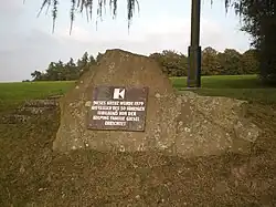 Bei der Errichtung des Kolpingkreuzes wurde ein Sandsteinblock mit einer Gedenkplatte mit folgendem Text enthüllt: