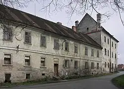 - Renaissanceschloss Komařice, der zweiflügelige zweigeschossige Bau entstand zwischen 1561 und 1566 für Elisabeth Korzensky von Tereschau anstelle eines 1560 abgebrannten Vorgängerbaus. 1598 brannte das Schloss erneut gänzlich aus. Nach dem Wiederaufbau schlug 1621 der Blitz ein, dabei brannte das Gebäude bis zum Erdgeschoss ab. Nach der Zumauerung der offenen Arkaden entstand 1653 die Kapelle des hl. Bernhard. Weitere Brände folgten 1673, 1709 und 1742. Den Turm an der Nordwestseite ließ 1903 der letzte Administrator des Stiftsgutes, Otmar Wohl, errichten. Heute ist das als Kulturdenkmal geschützte Gebäudeensemble stark baufällig und durch aufsteigende Feuchte gefährdet. Die Fassade ist mit Sgraffito sowie Arkaden auf toskanischen Säulen verziert, erhalten ist auch eine Sonnenuhr, die jedoch kaum noch erkennbar ist. Das Portal flankieren zwei Meilensteine aus dem Jahre 1693. Zum geschützten Schlosskomplex gehören der Schlossgarten mit Gartenpavillon, Bassin, Orangerie und Gartenmauer sowie der Speicher. Jedoch sind die Orangerie und das Gartenbassin bereits nicht mehr erhalten und das Gärtnerhaus eingestürzt. Die Glocke des Schlossturmes wurde 2011 gestohlen.[13]