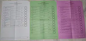 Bei der Wahl der Bezirksvertretung in einer kreisfreien Stadt handelte es sich dagegen um eine reine Listenwahl, bei der jeder Wähler ebenfalls nur eine Stimme hatte.[5] (Ober-)Bürgermeister bzw. Landrat wurden durch Mehrheitswahl bestimmt; auch hier besaß jeder Wähler eine Stimme.[6]